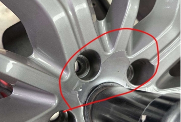 표시된 부분 도장이 벗겨지고 있으며 이런 현상은 타 업체에서 휠 복원 작업시