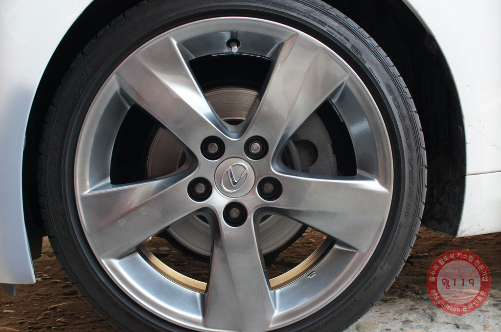 차량은 렉서스 IS250 차량으로 보도블럭에 휠이